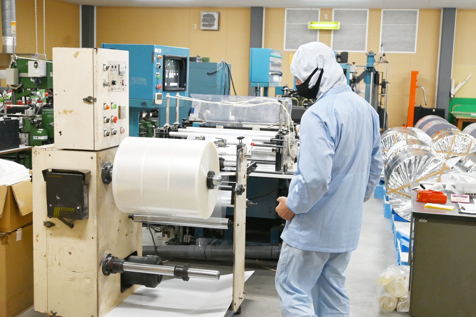 食品包材を製袋する為、食品製造工場に準じた衛生環境・設備環境を備えています。